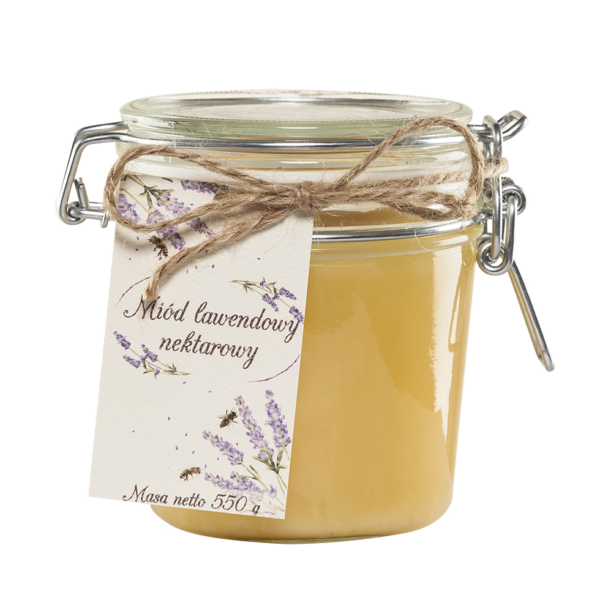 Miód lawendowy pozyskiwany jest z kwiatów lawendy prawdziwej. Roślinie, z której pochodzi zawdzięcza piękny zapach, który dobroczynnie wpływa na nerwowy nastrój. Miód lawendowy zaliczany jest to najszlachetniejszych miodów. Zapakowany w piękny słoik z klamrą może być idealnym prezentem.