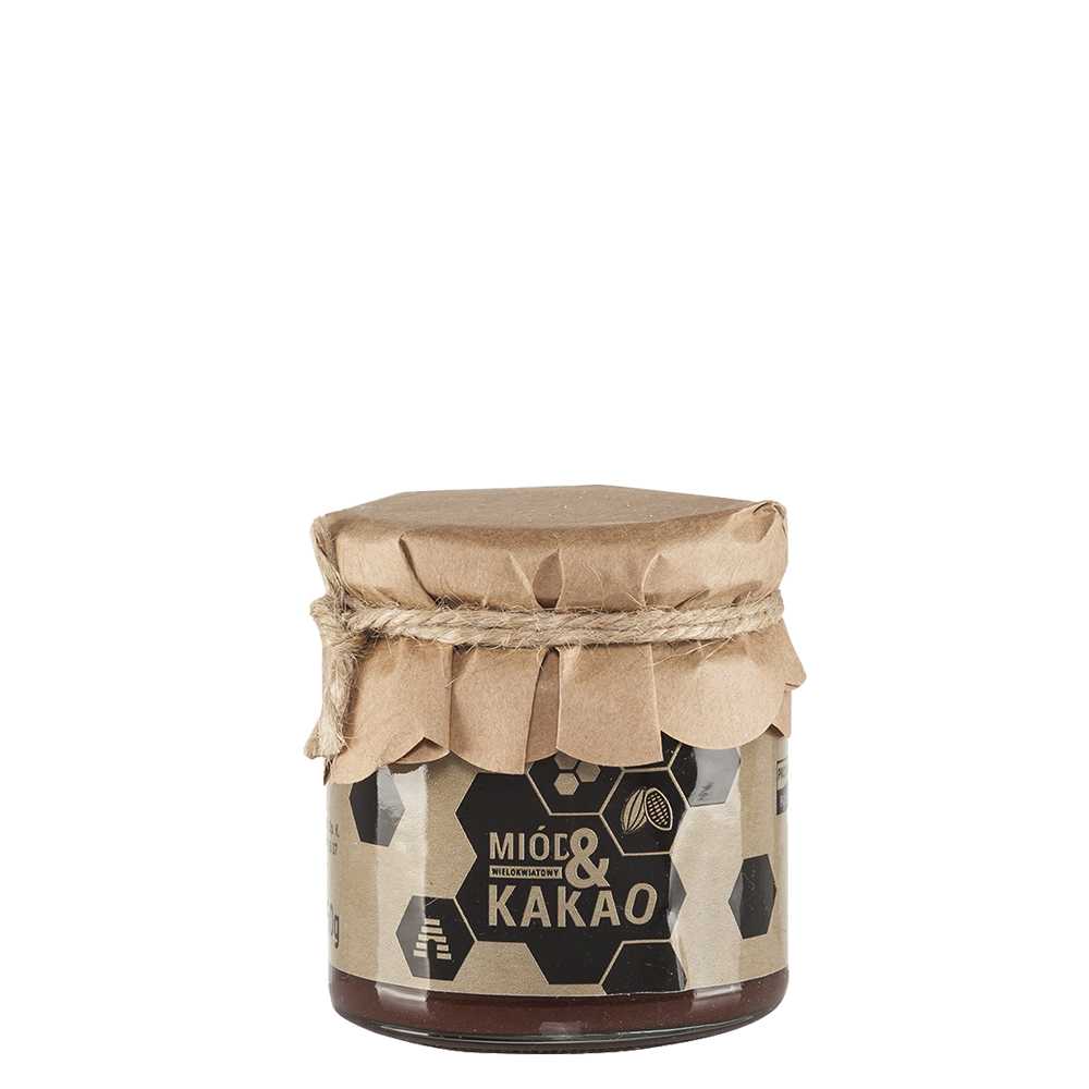 Doskonale pyszne połączenie słodyczy miodu z naturalnie gorzkim kakao (100% kakao). Miód z kakao jest wolny od konserwantów, dlatego śmiało może zastąpić wiele popularnych smakołyków, Idealny na kanapkę czy dodatek do mleka.