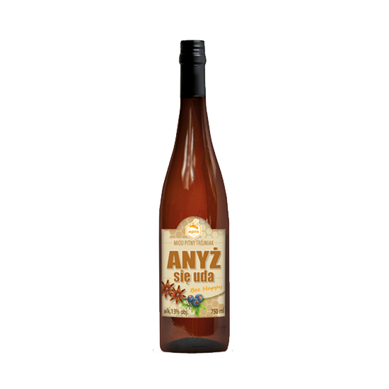 Miód pitny trójniak “Anyż się uda” to połączenie miodu nektarowego z aromatycznym anyżem i jałowcem dzięki czemu otrzymuje charakterystyczny przyprawowy, oryginalny smak.