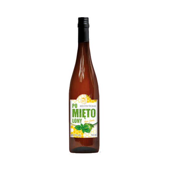 Miód pitny trójniak „Pomiętolony” charakteryzuje się intensywnym smakiem i aromatem. Dodatek soczystego zielonego jabłka, mięty oraz źródlanej wody sprawiają, że miód pitny „Pomiętolony” jest wyjątkową pozycją na rynku miodów pitnych.
